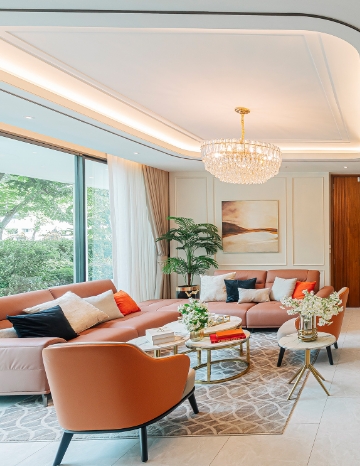 Master bedroom suites at Racha Park feature double-volume ceilings with full-height windows and a functional, universal design that allows you to effortlessly transform it into your ideal retreat.
